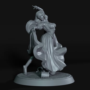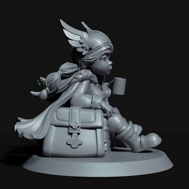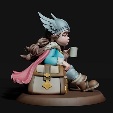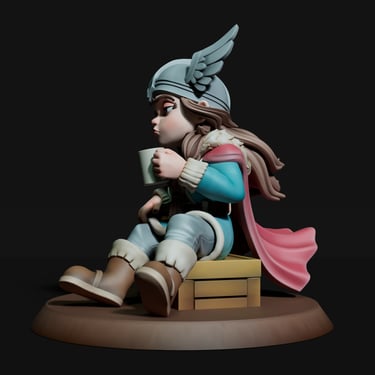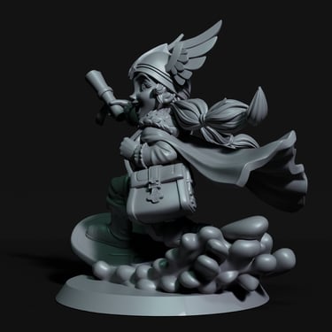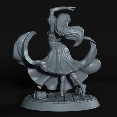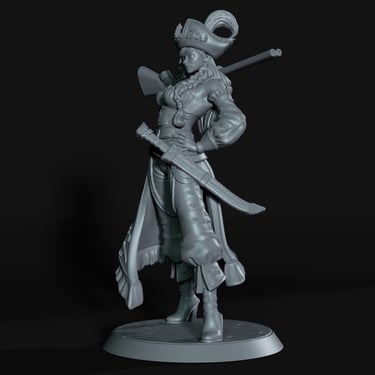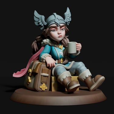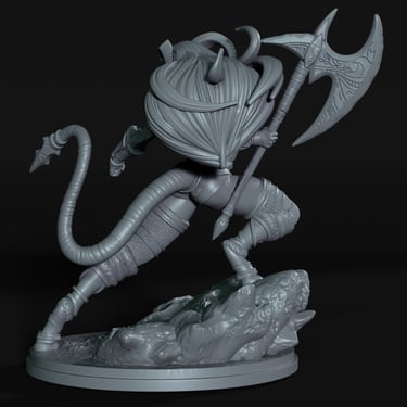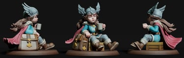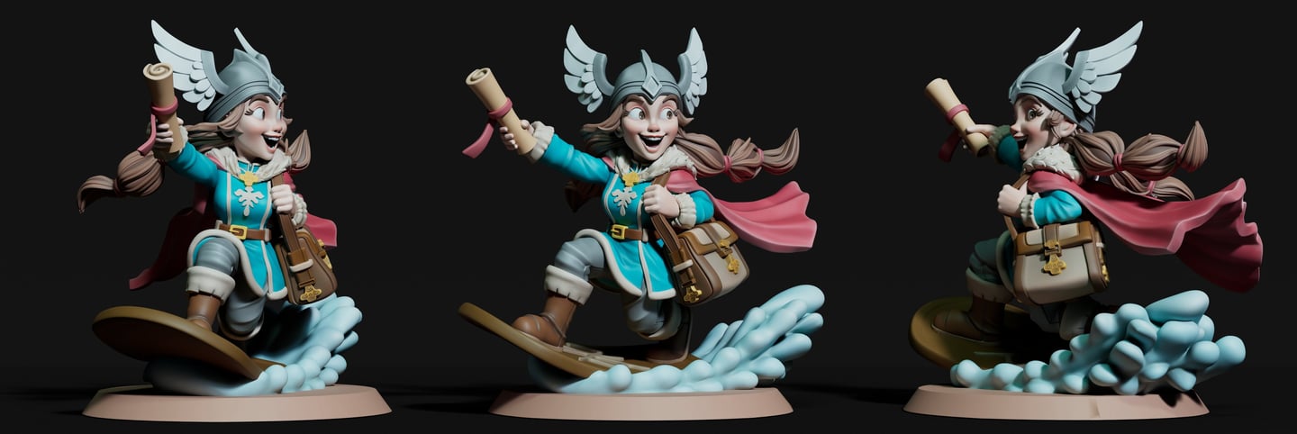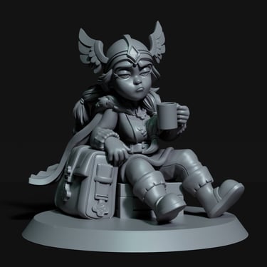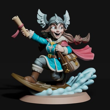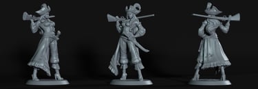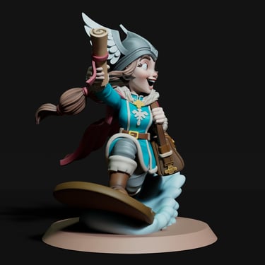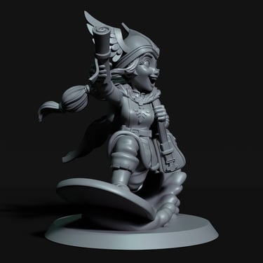 The character is presented in two narrative-driven poses that showcase personality through body language and facial expression. Highly expressive face designed for readability at miniature scale.
