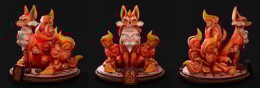 Kainkitsu is the god-spirit of the Fire Order in my original elemental universe. His design draws heavily from traditional Japanese art, especially the stylized depiction of fire, clouds, and expressive animal forms. Within the elemental world, he represents fire as discipline and mastery rather than uncontrolled destruction.