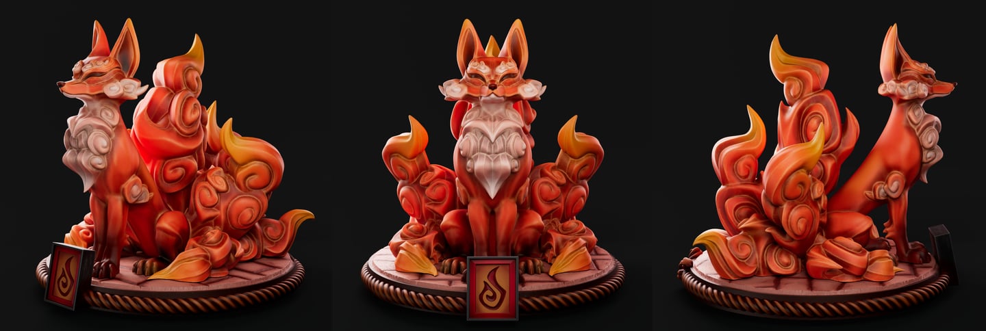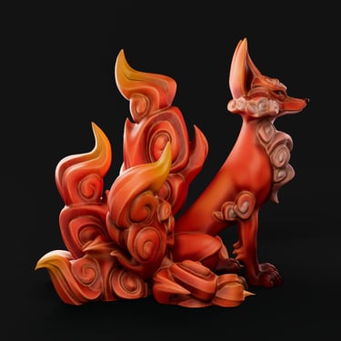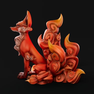 Kainkitsu is the god-spirit of the Fire Order in my original elemental universe. His design draws heavily from traditional Japanese art, especially the stylized depiction of fire, clouds, and expressive animal forms. Within the elemental world, he represents fire as discipline and mastery rather than uncontrolled destruction.